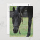 Süße, schwarze Pferde weiden auf einem Feld.