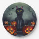 Schwarzkatze, Fledermäuse und Jack-O-Laternen Pappteller