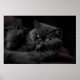 Schwarzpersisches Katzenposter. Eine schwarze Perserkatze ist ein atemberaubender Katze mit einem dicken, lustrosen Fell, der im Licht glänzt. Sein langes, fließendes Fell ist weich zur Touch und seine runden, ausdrucksstarken Augen sind typischerweise ein helles, auffallendes Gelb oder Grün. Diese Rasse ist bekannt für ihr wahres Aussehen und ihre sanfte Natur, was sie zu einer beliebten Wahl für Katzenliebhaber auf der ganzen Welt macht.