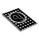 Schwarze Punkte in nahen Vierteln erzeugen ein zweitrangiges Muster weißer Sterne. Ein großer schwarzer Kreis ist von weißen Linien umgeben, während ein weißer Single die Mitte ziert.