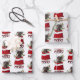 Das wiederholte Muster auf diesen Weihnachtsblättern ist ein Bild eines Schwarz-Bein-Dackel-Hundes, der aus einer rot-weißen Weihnachtsgeschenktüte herausguckt. Hinter ihm steht ein Gezeter aus heiligen und roten Beeren. Stilisierter, roter und schwarzer Büffel karierter Text sagt MERRY CHRISTMAS". Der Hintergrund auf zwei der Blätter in diesem Set ist weiß, während das dritte Blatt silber ist.