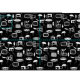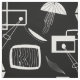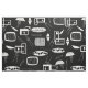 Modernes Gewebe der Mitte des Jahrhunderts, abstraktes Schwarzweiss-Muster mit schrulligen Formen und Linien. Weißes Muster auf einem schwarzen Hintergrund.