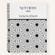 Notebook in Schwarz/Weiß mit elegantem, fast spitzenähnlichem Muster und Blume. Die drei Bereiche mit Text können auf Ihre Wortwahl angepasst werden.