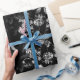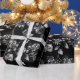 Schwarzweiss-Dahlie-Blumenrebe auf Schwarzem Geschenkpapier