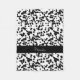 Ein gepunktetes Schwarzweiss-Muster des dalmatinischen Hundepelzes. Eine schwarze Fahne mit weißen Stichen und Text läuft herüber. Der Text kann besonders angefertigt werden.