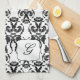 Schwarzweiss-Damast-Initialen-Geschirrtuch Geschirrtuch
