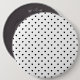 Kleine schwarze Herzen in einem Tupfenmuster auf einem weißen Hintergrund. Ein stilvoller modischer Entwurf.