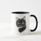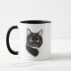 Schwarzweiss-Katzen-Tasse. Das schöne farbige Bleistiftzeichnen einer Schwarzweiss-Katze setzte sich auf eine Tasse!