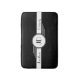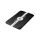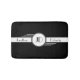 Monogramm-Kunst-Deko-Badematte. Initialen sind in einem weißen Kreis mit schwarzer Pinstripegrenze gerahmt. Monogramm wird vorbei zuerst und Nachname angegrenzt.