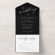 Schwarzweiß-Minimalistische, elegante Skripthochze All In One Einladung