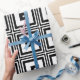 Dieses dekorative Feiertagsverpackungspapier kennzeichnet ein zeitgenössisches retro abstraktes Muster der genisteten Schwarzweiss-Quadrate.