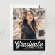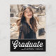 Laden Sie sich mit dieser anpassbaren Klasse von 2023 Abschluss Einladung Postcard. Es zeigt eine weiße Retro-Skript-Typografie auf einem schwarzen Hintergrund. Personalisieren Sie diese schwarze Abschlussfeier Postcard, indem Sie Ihr Foto, Ihren Namen und Ihren Schulnamen hinzufügen. Diese Foto Abschluss Einladung Postkarte ist ideal für High School oder Uni-Abschlüsse.