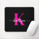 Dieses schlichte, elegante schwarze Mousepad mit Ihrem Vornamen in einem trendigen, weißen Script-Schriftart und Ihrem ersten Einstieg in einen modernen Kappe-Schriftart in heißen Rosa ist perfekt für Ihr Büro/Ihren Schreibtisch. Es ist stilvoll und trendig und dennoch sehr klassisch.
