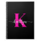 Dieses einfache, elegante, schwarze 6,5 x 8,75 Spiralnotebook mit Ihrem Vornamen in einem trendigen Script-Schriftart in Weiß und Ihr erster Einstieg in einen modernen Kappe-Schriftart in Hot-Rosa ist perfekt für Sie. Es ist stilvoll und trendig und dennoch sehr klassisch. Es wird in so vielen Situationen praktisch sein. Ideal für Arbeit, Zuhause, Schule, Journalismus.