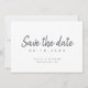 Moderner Minimalist speichern die Dattelkarten mit handgeschriebenem Pinselskript in kohleschwarz-weiß, einfach und stilvoll. Passen Sie es mit der Schriftart-Farbe Ihrer Wahl an. Sehen Sie sich alle passenden Stücke in der Sammlung an.