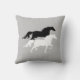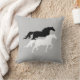 Stilvolle Schwarz-Weiß-Silhouetten auf dem silbergrauen Throw Kissen. Pferde symbolisieren die Kraft des Geistes der Natur.