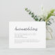 Moderne minimalistische Unterkunftskarte mit handgeschriebenem Pinselskript in kohleschwarz-weiß, einfach und stilvoll. Passen Sie es mit der Schriftart-Farbe Ihrer Wahl an. Sehen Sie sich alle passenden Stücke in der Sammlung unten an.
