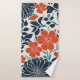 Brillante Scharlachrot- und schwarzstilisierte Blume mit staubigen aquamarinen Akzent-Blättern auf einem leinenfarbenen Hintergrund schaffen ein wunderschönes und stilvolles Set an Badetüchern.
