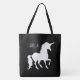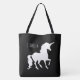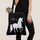 Schwarzweiss-Unicorn-Silhouette-moderne Trendy personalisierte Spaß-Taschen-Tasche. Wählen Sie von zwei verschiedenen Größen und von Bügellängen. Personifizieren Sie diesen Spaß und bunten Unicorn im weißen Schriftart auf Ihrer Wahl der Hintergrundfarbe. Schwärzen Sie Hintergrund mit hellem weißem Einhorn in der Mitte. FERTIGEN Sie besonders an, um zur rosa, lila oder anderen Farbe auf Front und Rückseite zu ändern. Spaßgeschenk für Kinder, Tweens und Teens die Liebe Unicorns und magische Geschöpfe. Bunt, modern und stilvoll.