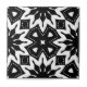 Modernes, dekoratives Keramik-Fliesendesign mit einem nahtlosen Muster aus abstrakten Formen in Schwarz und Weiß.
