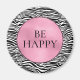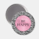 Schwarz und Weiß Zebra Print sind glücklich auf Glam rosa Kreis personalisiert inspirierender Magnet