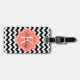 Schwarzweiss-Zickzack mit korallenrotem Monogramm Gepäckanhänger