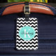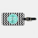 Schwarzweiss-Zickzack mit Türkis-Monogramm Gepäckanhänger