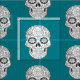 Schwarzweiss-Zuckerschädel auf aquamarinem Hintergrund