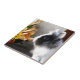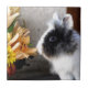 Portrait von schwarz-weißem Zwergkaninchen (Mammal) bei gelben Gänsen
