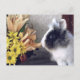 Portrait von schwarz-weißem Zwergkaninchen (Mammal) bei gelben Gänsen