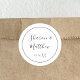 Verbessern Sie Ihre Gastgeschenke Hochzeiten mit unserem Schwarz-Weiß-Kalligraphie-Script Classic Round Sticker. Jeder Aufkleber ist akribisch gefertigt, mit eleganter Kalligraphie, die Ihren Geschenken eine persönliche Touch verleiht. Die zeitlose Schwarz-Weiß-Palette symbolisiert Einheit und Einfachheit und macht sie für jedes Hochzeitsthema vielseitig. Diese Aufkleber sind mehr als nur Dekorationen; sie sind Symbole Ihrer anhaltenden Liebe, die das Wesen Ihres besonderen Tages erfassen und Ihren Gästen einen bleibenden Eindruck verlasse.