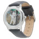 Kinder Edelstahluhr mit schwarzem Lederarmband