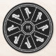Schwarzweißmotiv mit Saxophonen und Monogramm Runder Pappuntersetzer