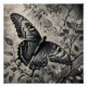 Schwarz-Weiß-Schmetterling mit zeichnend Baumzweigen und Blätter.