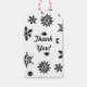 Schwarze Schneeflocken auf einem weißen Geschenkschild oder Gunst-Tag. Ein schwarz-weißes Geschenketikett oder ein Gunst-Tag, perfekt für jeden Anlass während der Weihnachts- oder Wintersaison. 'Danke' wird vor dem Tag geschrieben, während es einen Platz zum und von gibt.