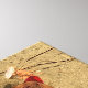 Rot-orangefarbene Herbstblätter schweben sanft über einem erdfarbenen Sandboden in diesem nah-up Foto der Herbstküste bei Handy Point, Cape Cod.