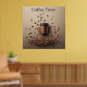 Schwebende Kaffeetasse mit Kaffeebohnen Poster