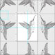 Geschaffen von einem Schwarzen auf Papierskizze eines schwebenden Kolibris. Dieser hübsche Schwarzweiss-Druck ist von einem Abstand so auffallend, wie er herauf nahes und ausführliches ist. Jeder Kolibri wird horizontal und vertikal, in den Gruppen von vier Vögeln widergespiegelt, die in Richtung zu einander gegenüberstellen, als ob treffend. Jeder Kolibri ist mit Wirbel, Linien und Punkten für Federdetails identisch. Set auf kundengerechtem weißem Hintergrund.