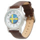 Schweden-Flagge Klassischer brauner Lederschimmer Armbanduhr