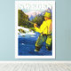 Vintage Reiseplakat für Schweden mit einem Fischer im Freien.
