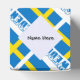 Die schwedische Flagge, blau mit einem gelben Nordischen Kreuz, und das Wort SCHWEDEN unten, blau mit schneebedeckten Buchstaben. Design ist gefliest für künstlerische Wirkung. Ein weißer Bereich mit quadratischen Quadraten hat einen Platz für Ihren Namen für eine personalisierte Touch. Wenn du will, ein individuelles Geschenk zu erstellen, dann füge einfach den Namen eines anderen hinzu.