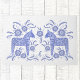 Ein traditionelles schwedisches Dala Horse Design in Blau und Weiß.