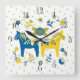 Schwedisch Folk Dala Horse l Blue und Yellow Quadratische Wanduhr