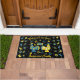 Dieses Doormat hat ein schwedisches dala Pferd Design in der Mitte mit klassischen Volkskunst Blume in Schwedens Fahnen blau und gelb. Am Rand sind die gleichen Pferde, Hähne und Schweine. Sie können das Hintergrundmuster auf der Tür kleiner oder größer machen. Personalisieren Sie dies mit Ihrem eigenen Gruß an der Spitze und Familiennamen am unteren Ende.