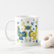 Diese Kaffeemaschine Tasse hat ein schwedisches Volkskunstdesign von Dala Rooster in den schwedischen Flaggen Blau und Gelb. Es gibt auch passende Blume der Volkskunst in derselben Farbe. Der Druck ist auf beiden Seiten der Tasse.