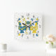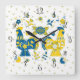 Schwedisch Folk Dala Rooster l Blue und Yellow Quadratische Wanduhr