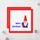 Whimsikale Abbildung des schwedischen Tomten, in rot und blau, mit einer schwarzen Laterne mit einem warmen gelben Licht. Bekannt als Nisse, oder verschiedene Namen in den verschiedenen Teilen der skandinavischen Region. Er ist ein Segen und ein Unheil machender. Leckerei ihn gut und er kann Ihnen helfen, mit Ihren Aufgaben rund um den Hof, Leckerei ihn schlecht und er kann Krawatte zusammen die Schwanz der Kühe in Ihrer Scheune. WindyDesign macht Karten in vielen Sprachen und verkauft sie bei Zazzle.