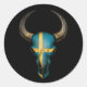 Schwedische Flagge Bull Skull auf schwarz Runder Aufkleber