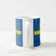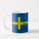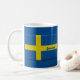 Flagge von Schweden in den schwedischen Farben von Blauem und von Gelbem, macht ein großes Geschenk für Ihre skandinavischen Freunde und Familie, besonders für Weihnachten. Geburtstage oder Jahrestage. Personifizieren Sie diese Tasse mit Ihrer Wahl von Namen auf beiden Seiten.
