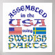Image zeigt beide Flaggen von USA & Schweden. Reads: "Verbaut in den USA mit schwedischen Teilen." Immer lustig und toll zum Lachen für diejenigen mit einem Sinn für Spaß. Spaß beim Teilen der schwedischen und amerikanischen Wurzeln, Erbschaften, Herkünfte und Kulturen. Auch für Wiedersehen und Kulturklubs.